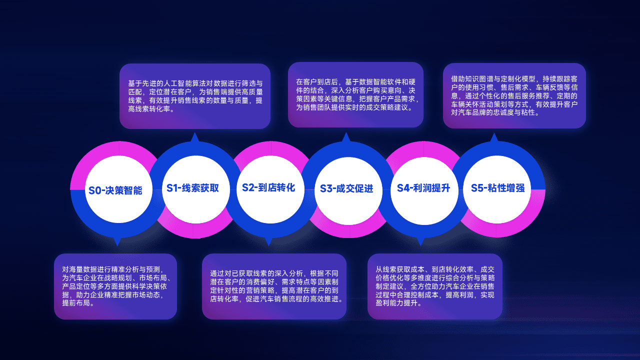 通过拓宽潜在客户来源、、、、优化线索分配并提高到店转化率,,,以增强销售效率。。同时,,,,利用线索数据不断优化分析模型,,有效提升转化率,,,,扩大营销影响力。。